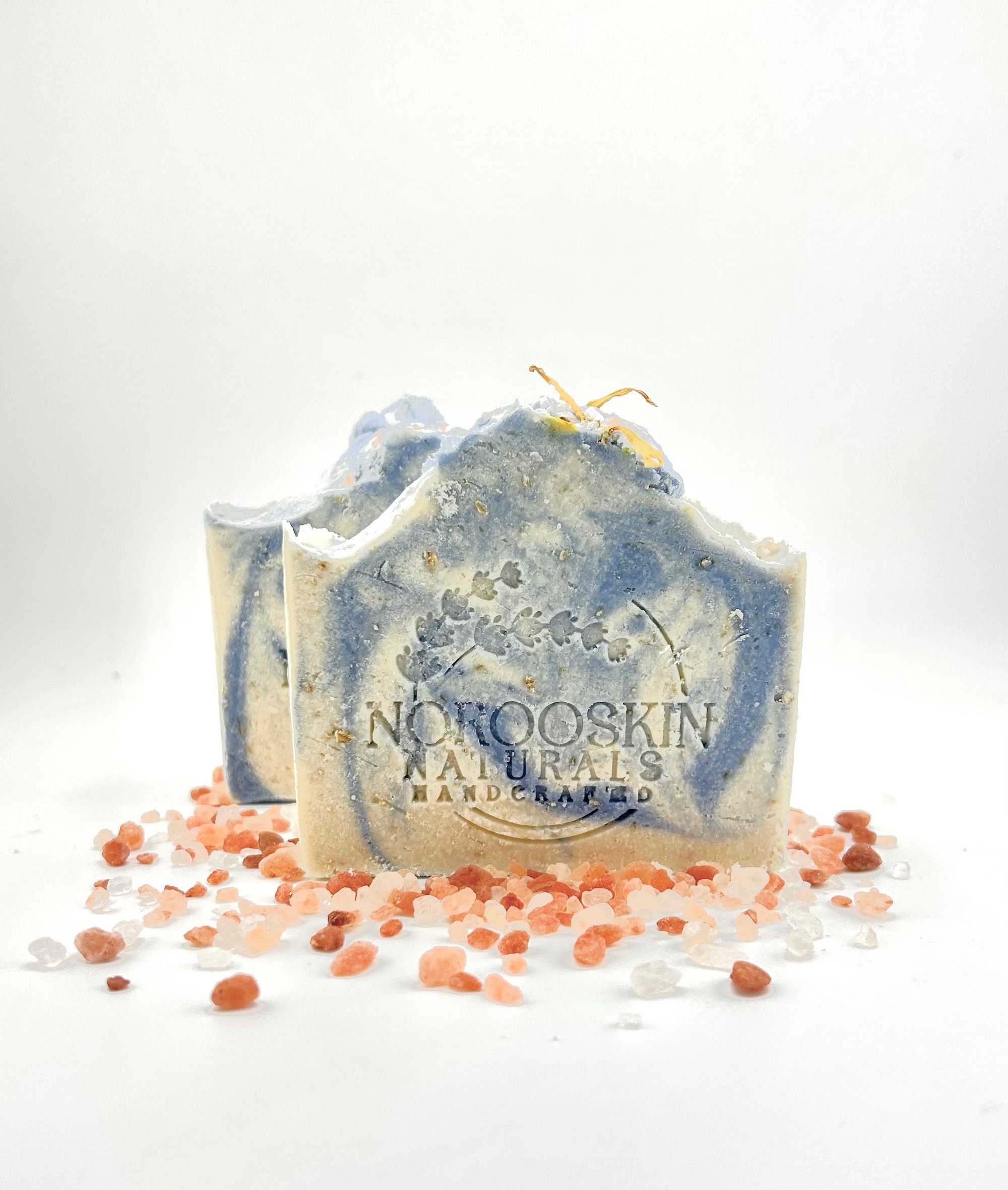 Seaside Breeze Himalayan Salt Bar, Infused with mineral-rich Himalayan Salt and Crisp, airy fragrance reminiscent of sea spray, this soap cleanses deeply while leaving your skin balance, soft, and exfoliated.